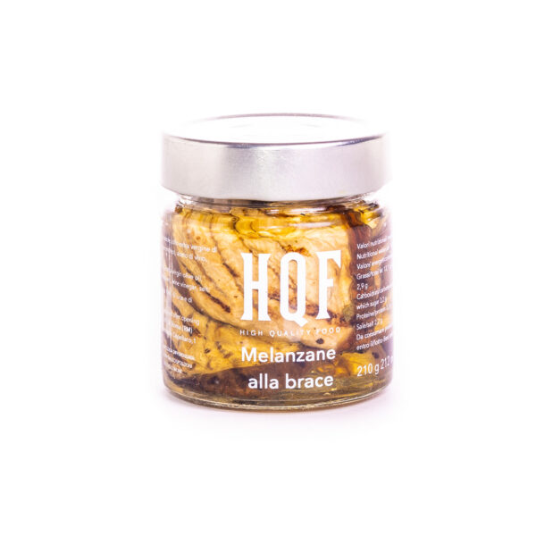 HQF offers a line of pickles without additives and preservatives, produced with only natural ingredients such as salt, vinegar and oil. The raw materials come exclusively from controlled crops and processed according to traditional recipes. The Aubergines, of the long type and with a dark purple colour, are processed when fresh. In this process, the grilled aubergines are flavored with a herb sauce, excellent for appetizers and side dishes.